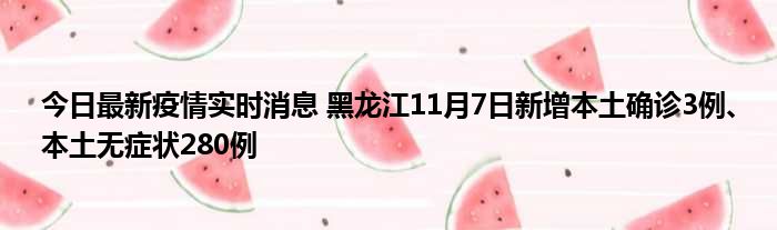 今日最新疫情实时消息 黑龙江11月7日新增本土确诊3例、本土无症状280例
