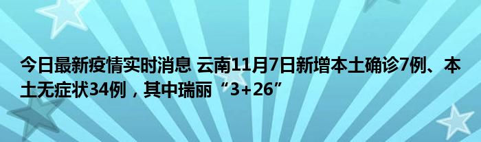 今日最新疫情实时消息 云南11月7日新增本土确诊7例、本土无症状34例,其中瑞丽“3+26”
