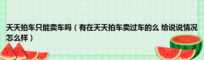 导读 大家好,今天小六子来为大家解答以下的问题,关于天天拍车只能卖车吗,有在天天拍车卖过车的么 给说说情况怎么样这个很多人还不知道,现在