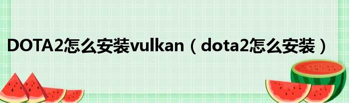 DOTA2怎么安装vulkan(dota2怎么安装)
