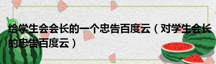 给学生会会长的一个忠告百度云(对学生会长的忠告百度云)