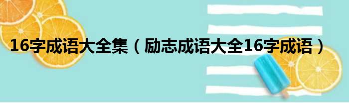 大家好,今天小六子来为大家解答以下的问题,关于16字成语大全集,励志成语大全16字成语这个很多人还不知道,现在让我们一起来看看吧!