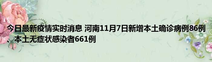 今日最新疫情实时消息 河南11月7日新增本土确诊病例86例、本土无症状感染者661例