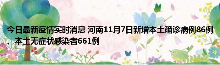 今日最新疫情实时消息 河南11月7日新增本土确诊病例86例、本土无症状感染者661例