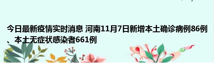 今日最新疫情实时消息 河南11月7日新增本土确诊病例86例、本土无症状感染者661例