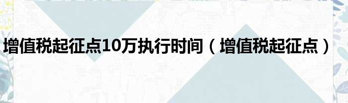 导读 大家好,今天小六子来为大家解答以下的问题,关于增值税起征点10万执行时间,增值税起征点这个很多人还不知道,现在让我们一起来看看吧!1、