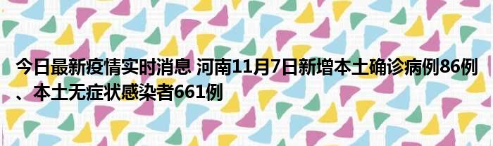 今日最新疫情实时消息 河南11月7日新增本土确诊病例86例、本土无症状感染者661例