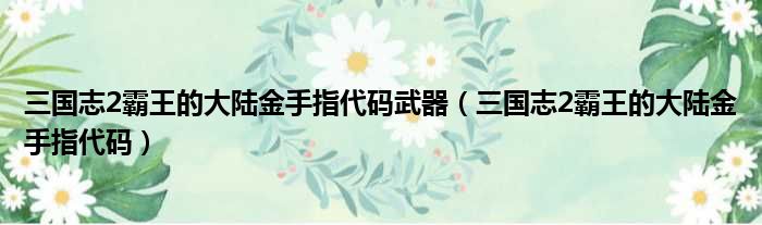 导读 大家好,今天小六子来为大家解答以下的问题,关于三国志2霸王的大陆金手指代码武器,三国志2霸王的大陆金手指代码这个很多人还不知道,现在