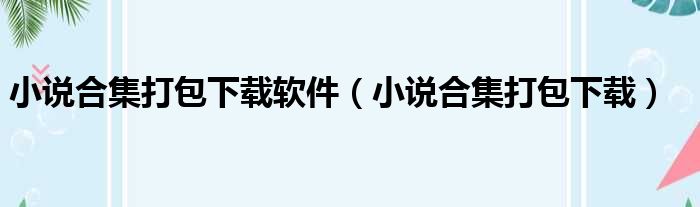 导读 大家好,今天小六子来为大家解答以下的问题,关于小说合集打包下载软件,小说合集打包下载这个很多人还不知道,现在让我们一起来看看吧!1、