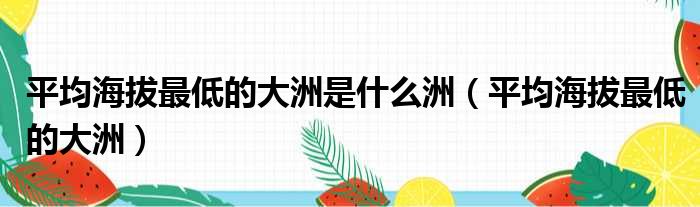 平均海拔最低的大洲是什么洲(平均海拔最低的大洲)