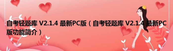 导读 大家好,关于自考轻题库 V2 1 4 最新PC版,自考轻题库 V2 1 4 最新PC版功能简介这个很多人还不知道,小勒来为大家解答以上的问题,现在让