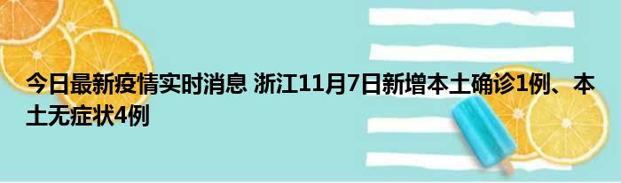 今日最新疫情实时消息 浙江11月7日新增本土确诊1例、本土无症状4例