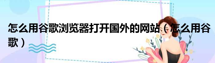 怎么用谷歌浏览器打开国外的网站(怎么用谷歌)