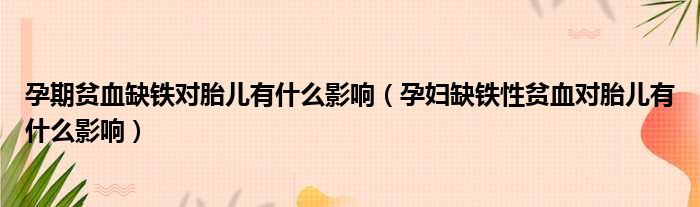 孕期贫血缺铁对胎儿有什么影响(孕妇缺铁性贫血对胎儿有什么影响)