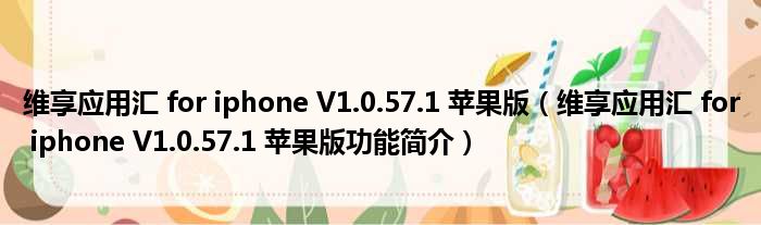 维享应用汇 for iphone V1.0.57.1 苹果版(维享应用汇 for iphone V1.0.57.1 苹果版功能简介)
