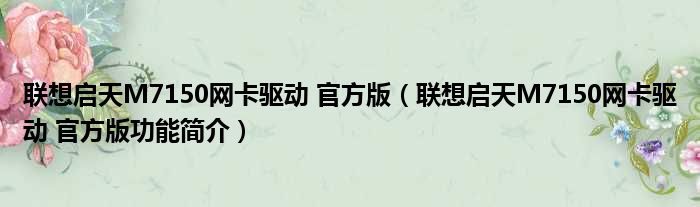 联想启天M7150网卡驱动 官方版(联想启天M7150网卡驱动 官方版功能简介)