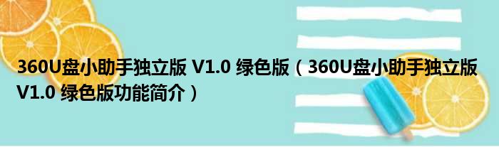 360U盘小助手独立版 V1.0 绿色版(360U盘小助手独立版 V1.0 绿色版功能简介)