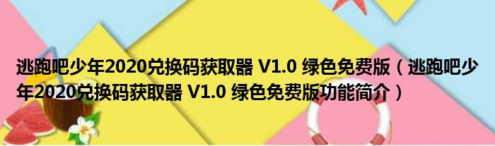 导读 大家好,关于逃跑吧少年2020兑换码获取器 V1 0 绿色免费版,逃跑吧少年2020兑换码获取器 V1 0 绿色免费版功能简介这个很多人还不知道,小