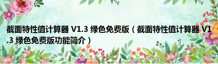 截面特性值计算器 V1.3 绿色免费版(截面特性值计算器 V1.3 绿色免费版功能简介)