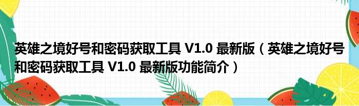 导读 大家好,关于英雄之境好号和密码获取工具 V1 0 最新版,英雄之境好号和密码获取工具 V1 0 最新版功能简介这个很多人还不知道,小勒来为大