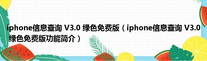 iphone信息查询 V3.0 绿色免费版(iphone信息查询 V3.0 绿色免费版功能简介)