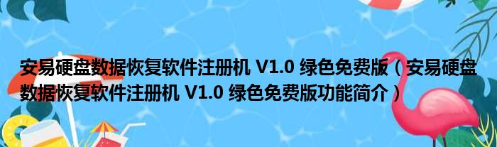 导读 大家好,关于安易硬盘数据恢复软件注册机 V1 0 绿色免费版,安易硬盘数据恢复软件注册机 V1 0 绿色免费版功能简介这个很多人还不知道,小