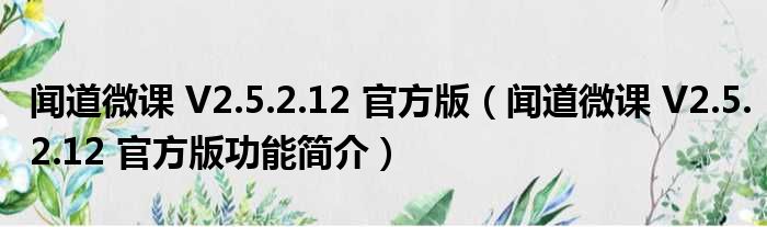 导读 大家好,关于闻道微课 V2 5 2 12 官方版,闻道微课 V2 5 2 12 官方版功能简介这个很多人还不知道,小勒来为大家解答以上的问题,现在让我