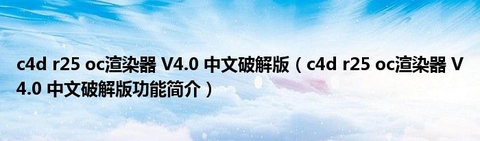 c4d r25 oc渲染器 V4.0 中文破解版(c4d r25 oc渲染器 V4.0 中文破解版功能简介)