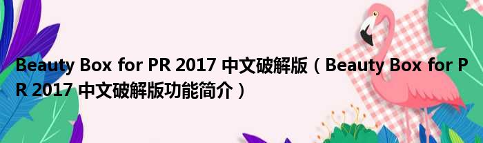 Beauty Box for PR 2017 中文破解版(Beauty Box for PR 2017 中文破解版功能简介)