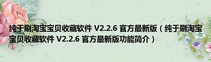 纯于刷淘宝宝贝收藏软件 V2.2.6 官方最新版(纯于刷淘宝宝贝收藏软件 V2.2.6 官方最新版功能简介)