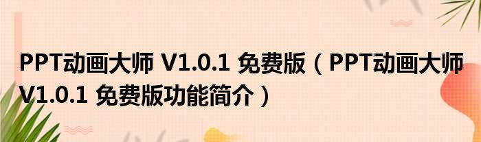 导读 大家好,关于PPT动画大师 V1 0 1 免费版,PPT动画大师 V1 0 1 免费版功能简介这个很多人还不知道,小勒来为大家解答以上的问题,现在让我