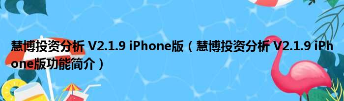 慧博投资分析 V2.1.9 iPhone版(慧博投资分析 V2.1.9 iPhone版功能简介)
