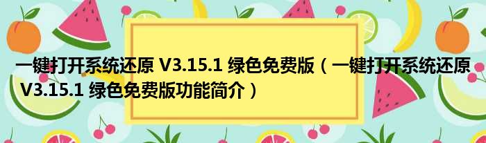 一键打开系统还原 V3.15.1 绿色免费版(一键打开系统还原 V3.15.1 绿色免费版功能简介)