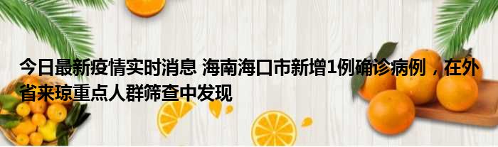 今日最新疫情实时消息 海南海口市新增1例确诊病例,在外省来琼重点人群筛查中发现