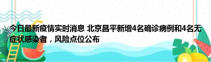 今日最新疫情实时消息 北京昌平新增4名确诊病例和4名无症状感染者,风险点位公布