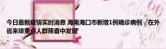 今日最新疫情实时消息 海南海口市新增1例确诊病例,在外省来琼重点人群筛查中发现