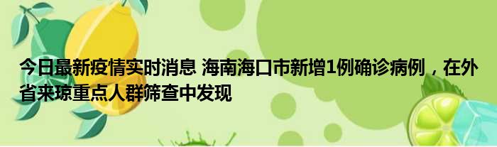 今日最新疫情实时消息 海南海口市新增1例确诊病例,在外省来琼重点人群筛查中发现
