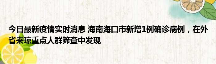 今日最新疫情实时消息 海南海口市新增1例确诊病例,在外省来琼重点人群筛查中发现