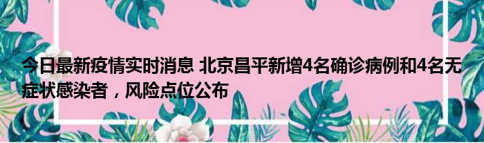 今日最新疫情实时消息 北京昌平新增4名确诊病例和4名无症状感染者,风险点位公布