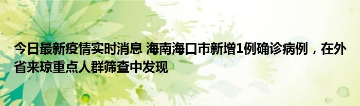 今日最新疫情实时消息 海南海口市新增1例确诊病例,在外省来琼重点人群筛查中发现