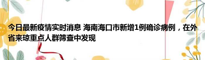 今日最新疫情实时消息 海南海口市新增1例确诊病例,在外省来琼重点人群筛查中发现