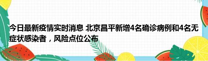今日最新疫情实时消息 北京昌平新增4名确诊病例和4名无症状感染者,风险点位公布