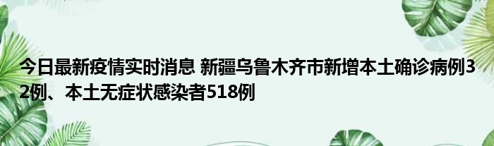 今日最新疫情实时消息 新疆乌鲁木齐市新增本土确诊病例32例、本土无症状感染者518例