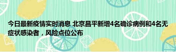 今日最新疫情实时消息 北京昌平新增4名确诊病例和4名无症状感染者,风险点位公布