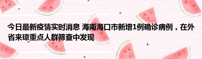 今日最新疫情实时消息 海南海口市新增1例确诊病例,在外省来琼重点人群筛查中发现