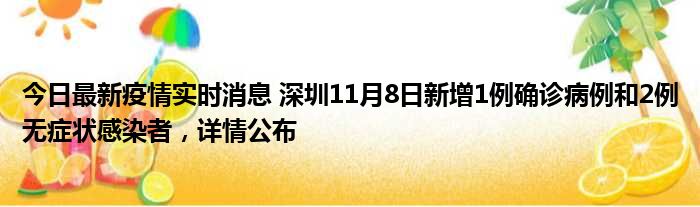 据深圳卫健委,11月8日0-24时,深圳新增1例新冠肺炎确诊病例和2例新冠病毒无症状感染者