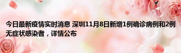 据深圳卫健委,11月8日0-24时,深圳新增1例新冠肺炎确诊病例和2例新冠病毒无症状感染者