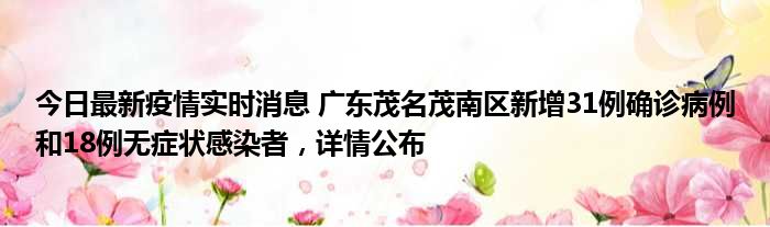 今日最新疫情实时消息 广东茂名茂南区新增31例确诊病例和18例无症状感染者,详情公布