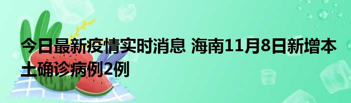 据海南卫健委,11月8日0时—24时,海南省新增本土确诊病例2例,其中,海口市1例,在外省来琼重点人群筛查中发现;三亚市1例,在隔离管控人员中发现