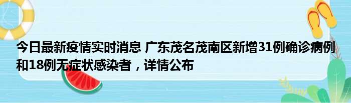 今日最新疫情实时消息 广东茂名茂南区新增31例确诊病例和18例无症状感染者,详情公布
